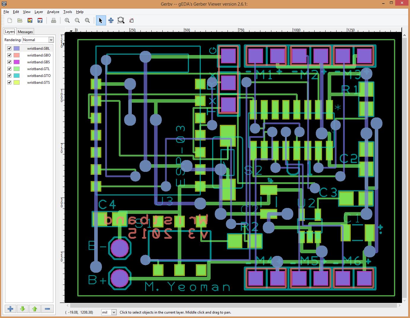 You open the 6 Gerber files in Gerbv, which enables you to view each layer separately or superimposed:Â
