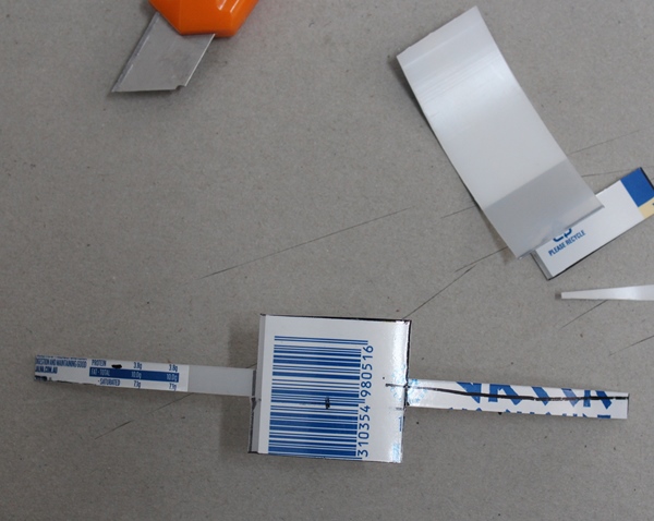 A piece was cut out which had a thin portion to wrap around the wrist, and a wider platform to hold the battery and electronics.