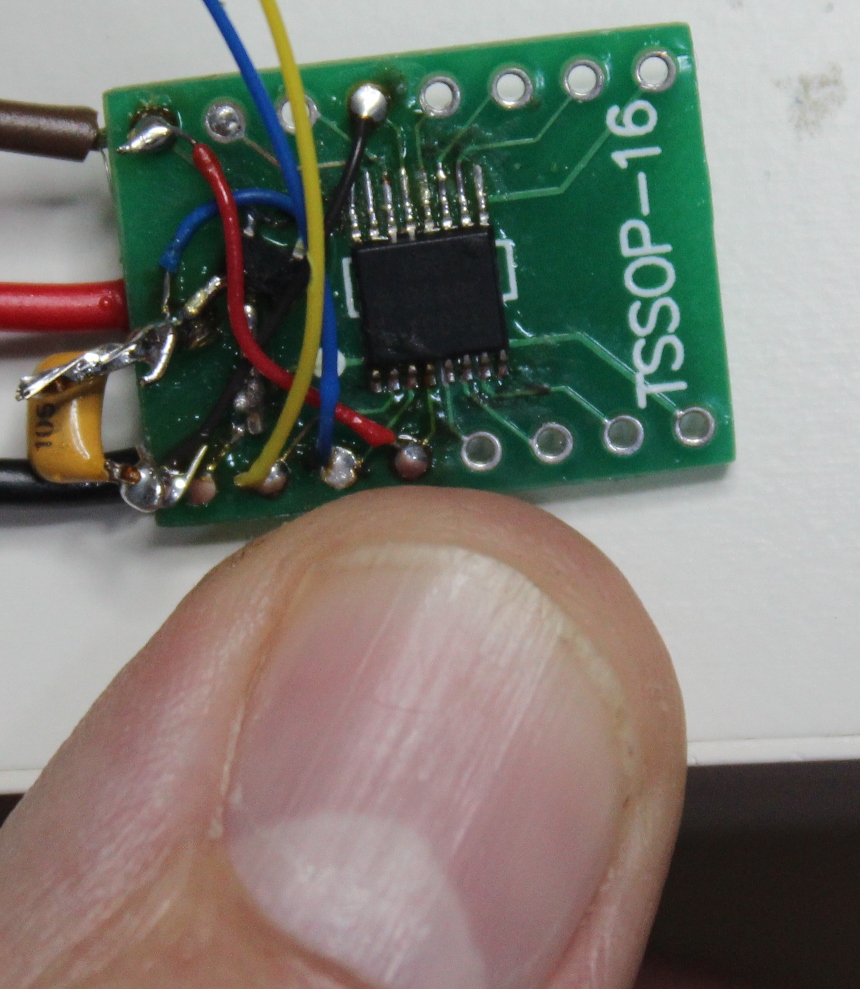 As you may have noticed from the picture at the top of this post, it is not likely to win any product design awards. Having said that, it moved my personal construction techniques into new territory. There is nothing quite like using a microscope to solder together SMD parts across a free blank area of the PCB when afterwards you can hardly see that there is anything there.