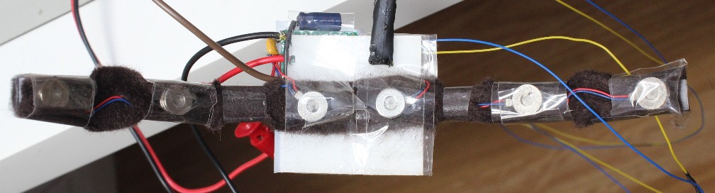 I later modified this design in three ways, because in practice I found that vibrations were being transmitted via the band itself, which meant that each actuator did not feel as localised as I wanted: